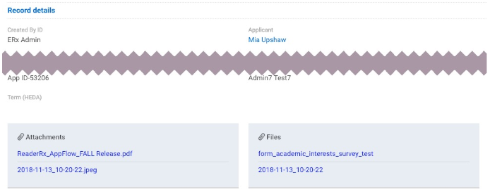 ERX Reader supports Salesforce Attachments and Salesforce Files. If either of these are attached to a record, they are listed immediately beneath the record details, like this: